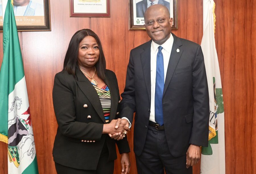 Hon. Abike Dabiri-Erewa, Chairman CEO Nigerians in Diaspora Commission with the Governor of the Central Bank of Nigeria, Olayemi Cardoso