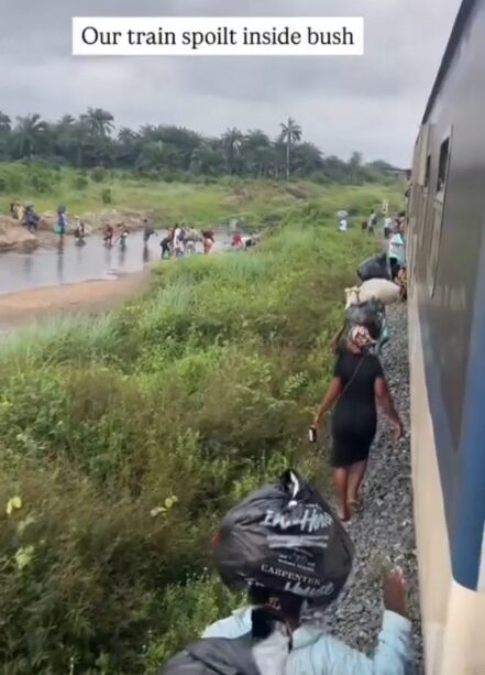 One of the passengers, a lady, took to social media to lament the situation, sharing a video of the halted train and voicing her frustration.