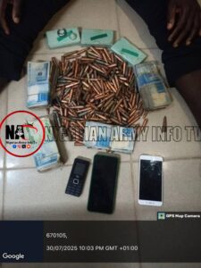 According to Muhammad, items recovered from the suspect during the operation include 362 rounds of 7.62mm special ammunition, 1 round of 7.62mm NATO ammunition, ₦842,100, a black Jing Cheng rubber motorcycle, Redmi Android phone, Itel phone, two silver rings and a First Bank ATM card.