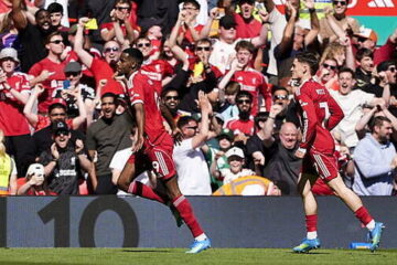 Saka restored Arsenal’s lead in first-half added time after Martinelli broke clear on the counter-attack only for Liverpool to level once more eight minutes after the break when substitute Roberto Firmino, on for the injured Diaz, fired beyond keeper Aaron Ramsdale.