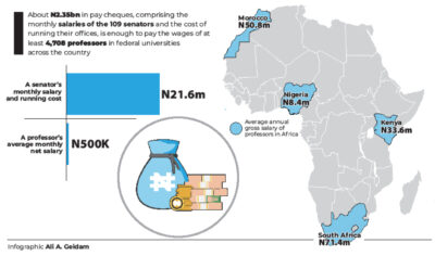About N2.354 billion in pay cheques, comprising the monthly salaries of the 109 senators and the cost of running their ...No more new federal tertiary institutions for seven years — FEC