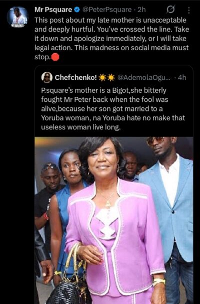 Peter Oloye of P-Square has hit a social media troll who alleged that his late mum was biased towards his ...What stood my father out as a theatre legend —Hubert Ogunde’s son