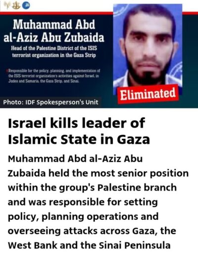 Israel has said its military has killed leader of Islamic State in Gaza Muhammad Abd al-Aziz Abu Zubaida held the ...Trump accuses China, Russia, North Korea of plotting against USA