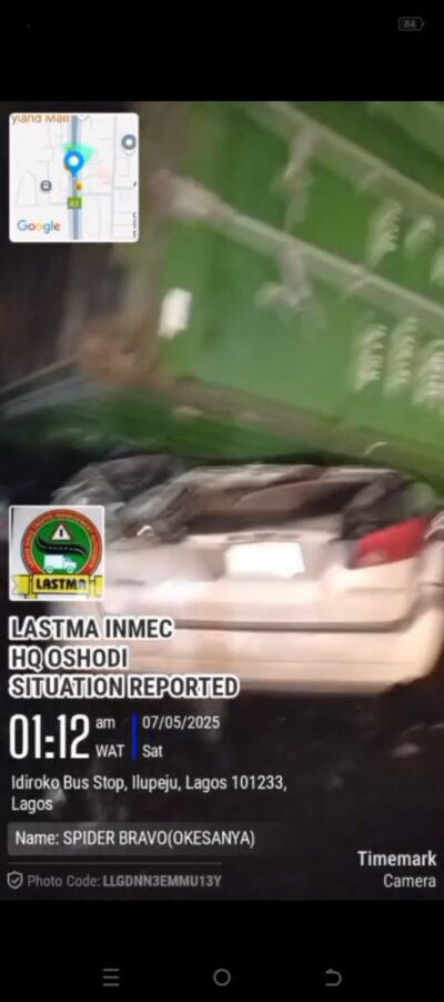 40-foot container falls on Toyota Sienna in Lagos, driver escapes death