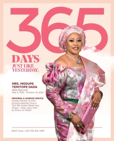 Ebun Emmanuel, October 16, 2025 The Nigeria Security and Civil Defence Corps, NSCDC, Jigawa State Command, on Wednesday identified the ...Family unveils one year memorial event to honour late Modupe Dada in Lagos