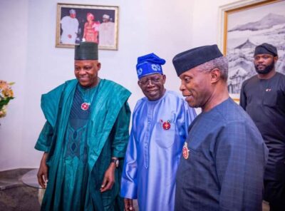 Vice President Yemi Osinbajo on Wednesday, visited the presidential candidate of the ruling All Progressives Congress, Asiwaju Bola Tinubu and ...Tinubu, Shettima caught sharing money [VIDEO]