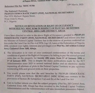 The Minister of Federal Capital Territory, Nyesom Wike, has revoked the land meant for the Peoples Democratic Party’s national ...Misconduct, financial breaches, other allegations against Fubara [FULL LIST]