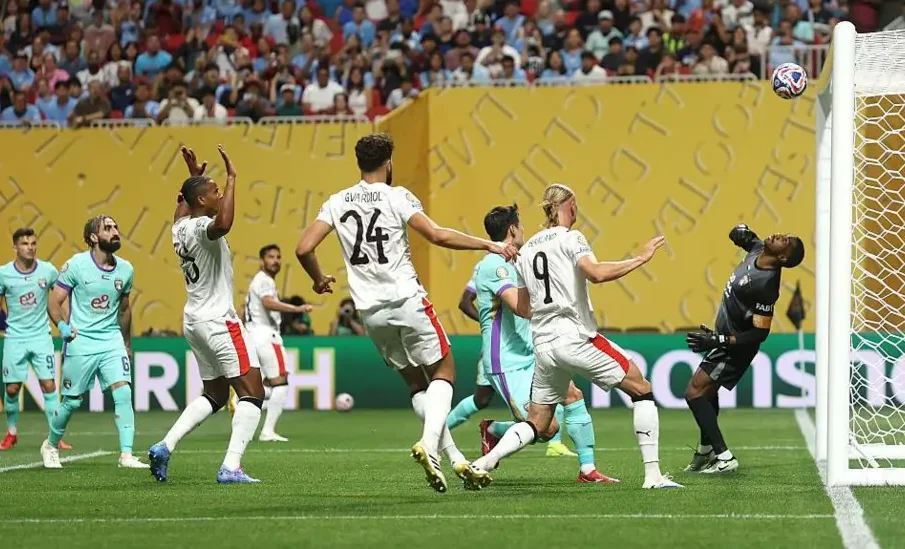 City went 3-0 up before half-time courtesy of Erling Haaland’s penalty after Ramy Rabia bundled over Manuel Akanji in the box – the referee awarding the spot-kick after reviewing the incident on the pitchside monitor.