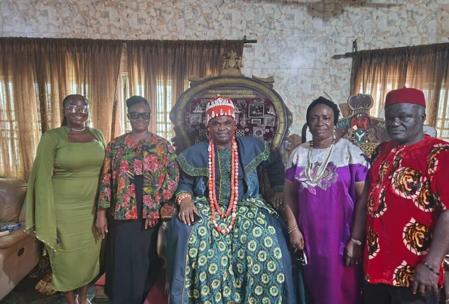 L- R: Miss Oluoma Okoli; Human rights lawyer and Ambassador for Peace, Bar Chidi Grace Obeke-Okoli; Traditional Ruler of Nka, HRH, Igwe Ogo Ezekunie Ezeilo; Bar Uju Ogbuefi and Chief Arinze Ezeaso, during the New Yam Festival in Nanka town of Orumba North Local Government Area of Anambra State... recently