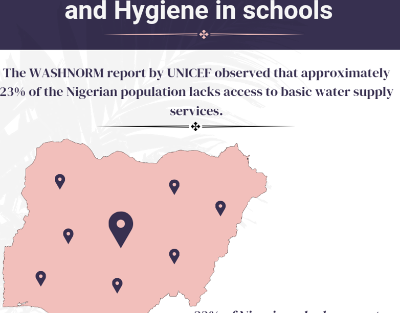 It states that: “only 11% of schools have basic water supply, sanitation, and hygiene services,” meaning that less than half of all schools in Nigeria have access to basic water supply, sanitation, and hygiene services.