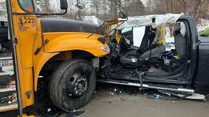 A school bus and a trailer rammed into each other on Thursday, leading to the death of one person, while four other persons were critically injured.