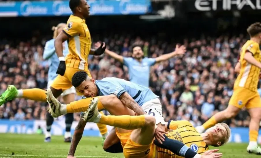 Manchester City stumbled again in the battle to secure a return to the Champions League as they were pegged back twice by fellow top-five challengers Brighton in an entertaining encounter at Etihad Stadium.