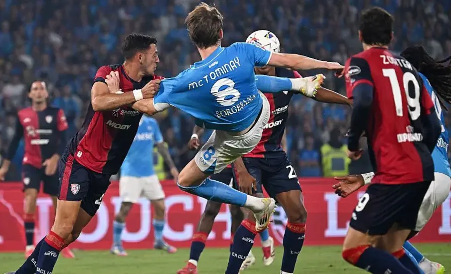 Scotland midfielder Scott McTominay scored a spectacular scissor-kick volley to help Napoli beat Cagliari and take the club to their fourth Serie A title.