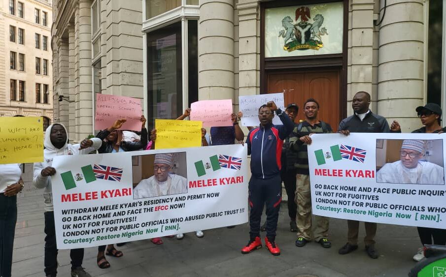Nigerians protested at the Nigerian high commission in the UK and the Home Office, demanding the return of Mele Kyari, former group chief executive officer (GCEO) of the Nigerian National Petroleum Company (NNPC) Limited, to Nigeria.