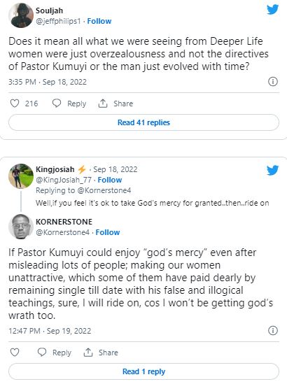 Nigerians on social media have expressed shock after General Superintendent of Deeper Life Bible Church, Pastor Williams Kumuyi warned ushers not to turn back sisters attending church without head coverings.