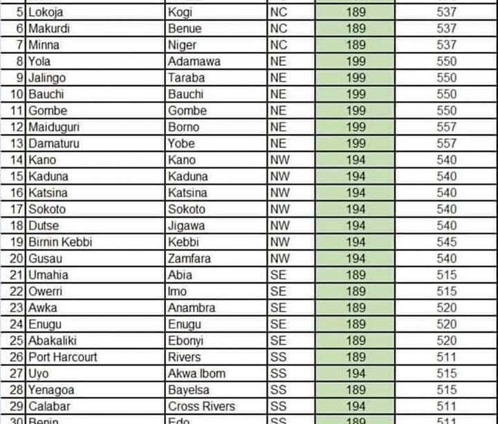 Others are Kano with current pump price of N194 now jerked up to N540; Kaduna from N194 to N240/litre among other States in Nigeria.