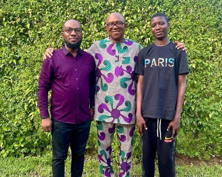 The Labour Party presidential candidate in the 2023 general election, Peter Obi, on Friday visited Quadri Alabi, the young boy who went viral during the election after a photo of him standing in front of Obi’s convoy surfaced online.