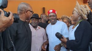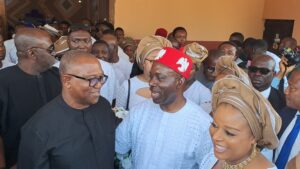 The presidential candidate of the Labour Party in the 2023 presidential election, Mr Peter Obi, on Saturday joined the Soludo Family and other eminent Nigerians to pay last respects to Governor Charles Soludo’s father, Pa Simeon Nwankwo Soludo, at Isuofia, Anambra State.
