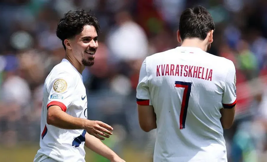 Vitinha and Khvicha Kvaratskhelia linked up - unintentionally - to score PSG's opener