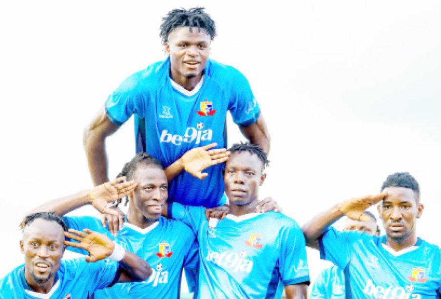 Remo Stars players celebrating one of the goals scored against Comorian side US Zilimadjou yesterday. PHOTO CREDIT Sulaiman Adebayo