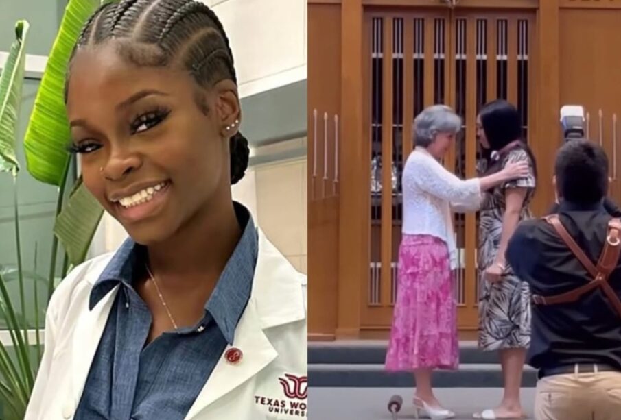The sister of Tamilore Odunsi, the British-Nigerian nursing student stabbed to death by her male roommate in Texas, has shared the emotional moment she accepted her nursing pin at her graduation ceremony.