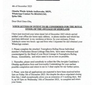 Posts Tagged "Awujale: KWAM 1 given form to proof linage"