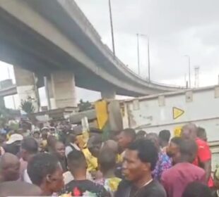 Lagos truck falls on commercial tricycle, kills policeman, woman