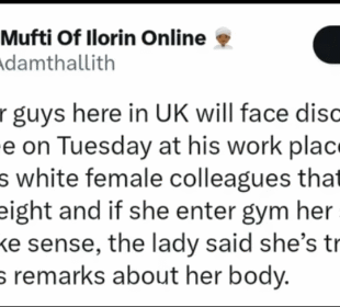 Loud-mouth Nigerian in UK faces disciplinary panel for saying female colleague added weight
