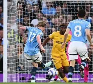 Kevin de Bruyne scored in his penultimate home game to edge Manchester City past Wolves and lift them to third place in ...Nunes sends Man City third with late winner against Villa