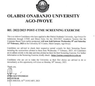 The Olabisi Onabanjo University, Ago Iwoye, Ogun State, has given a new date for its post-UME screening for new students seeking admission ...