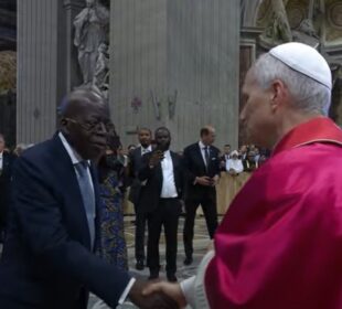 President Tinubu in warm handshake with Pope Leo XIV after inauguration