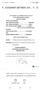 The court also held that any aggrieved party with any part or whole of the ruling is at the liberty to appeal to the FCT Customary Court of Appeal and challenge its decision.