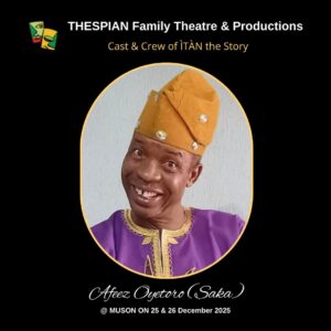 ITAN the Story dexterously dramatises the intrigues that characterise the relationship between the old and the new in the delicate mission to move society forward. Elders want to push the tested principles but the youth too want to have more than a say. It is the search for this delicate balance that Jaiyesinmi processes into a most engaging and entertaining play which, she says, will offer the audience a memorable Christmas and Boxing Day.